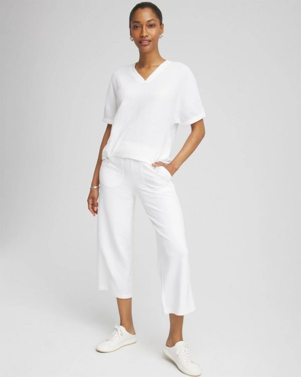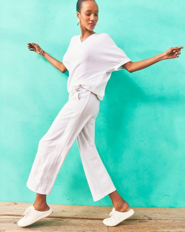 Crafted from lightweight and luxurious French terry knit featuring gauze inset side seams, these bottoms have a comfortable wide-leg fit. Ribbed-trim front pockets offer beautiful coverage. Featuring a ribbed-knit back waistband for ease of wear. Pair with matching Zenergy® tops showcasing the season’s gauze accents.