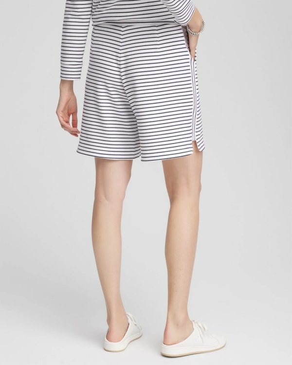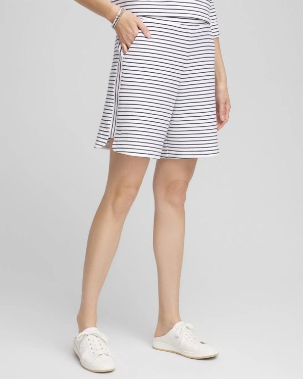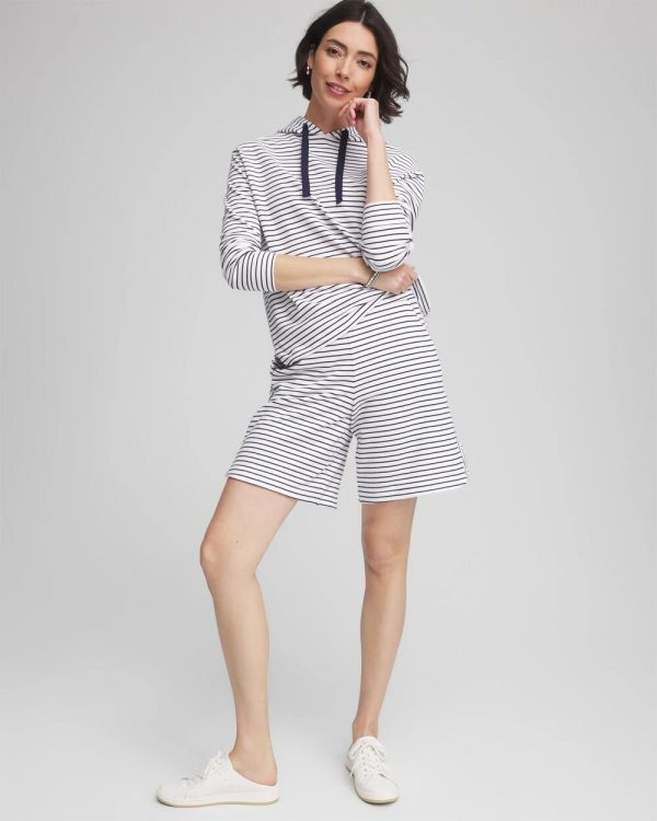 Part of our new summer collection for 2025, these lightweight French terry cloth cotton shorts showcase a timeless horizontal striped design and stylish contrast vertical striped shortened side seam to allow for more movement. Pair these pull-on shorts with its matching top and other pieces perfect for lounging in the Cabana.