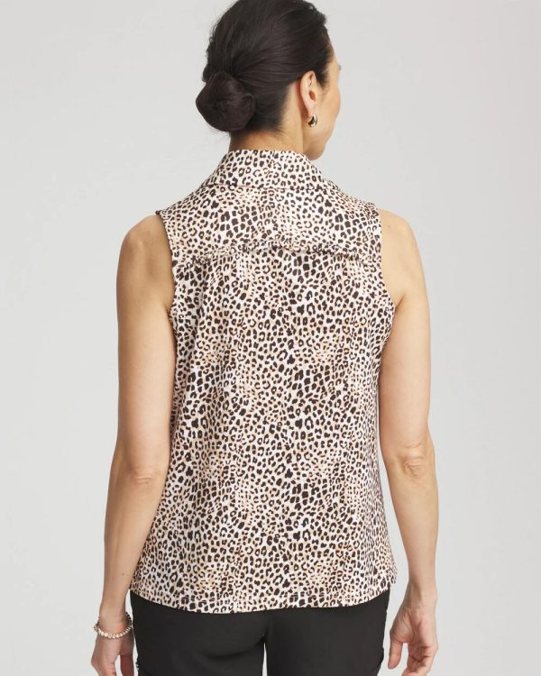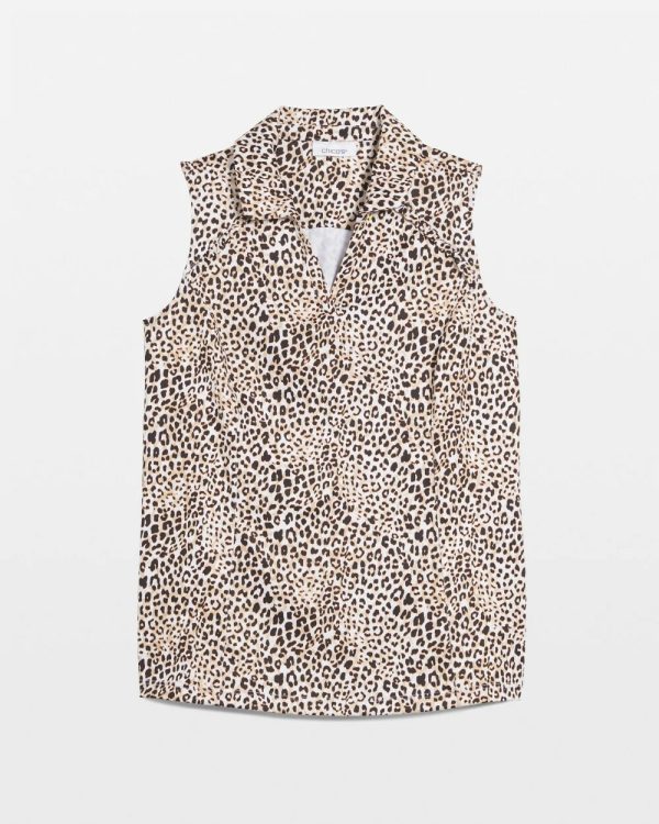 Feel stylish while you stay active in our animal print Zenergy® UPF Sleeveless Ruffle Polo. Made with Chico’s exclusive hi-tech UPF knit fabric, featuring UVA and UVB to keep you shielded from the sun’s rays. Cut from a lightweight, rapid-dry, moisture-wicking fabrication, rated UPF 50+. Featuring a touch of luxury — ruffle placket and yoke detailing with a face-framing split neckline, collar, and polo body. Pairs perfect with Zenergy® UPF skorts.