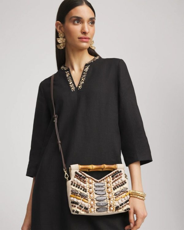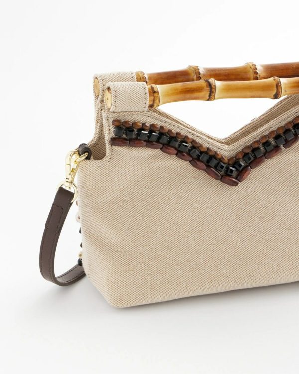 Multiple ways to wear — Featuring a bamboo handle, beaded body, and adjustable shoulder strap. Embrace the island-inspired motif of the season with this tonal-neutrals accessory. The perfect vacation handbag purse.