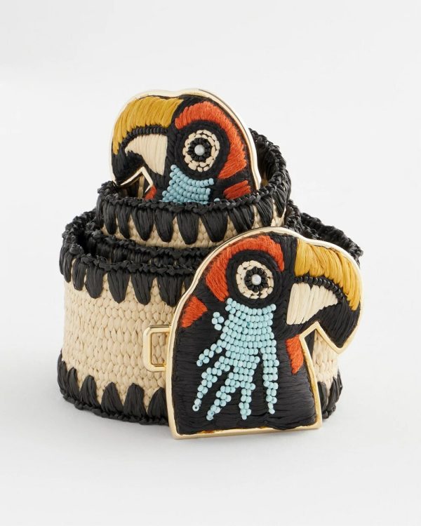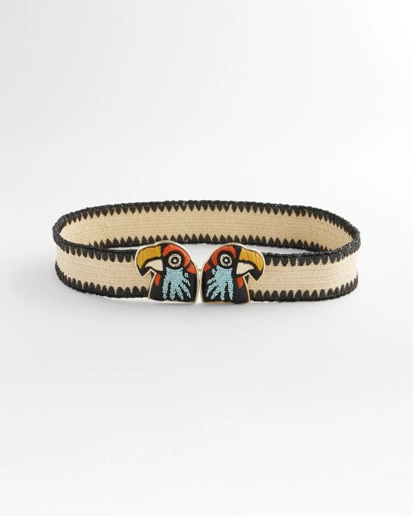 Finish off your belted pant or dress styles with this tropical island life motif stretch belt. Pair with this season’s matching styles for a head-to-toe eye catching look.