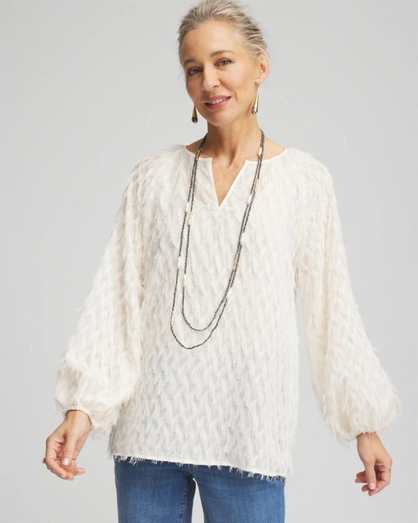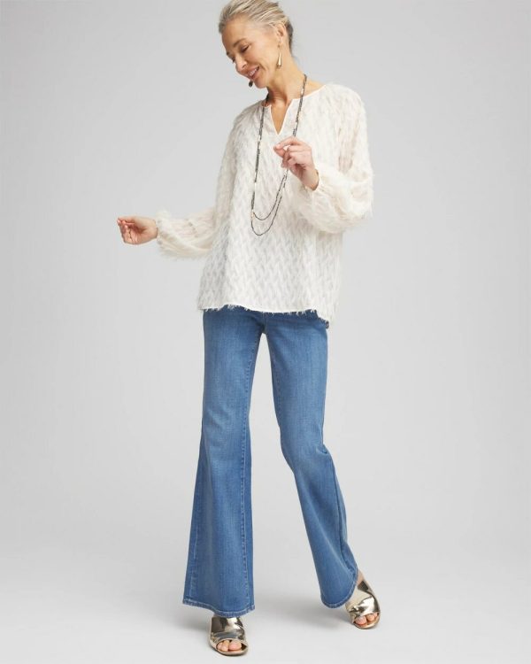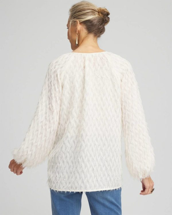 With fashion-forward fringe detailing this new Chevron Velvet Blouse makes dressing-up or down a breeze. Made with soft and elegant fabric with stylish all-over fringe details. Pair with matching Brigitte™ pants or jeans.