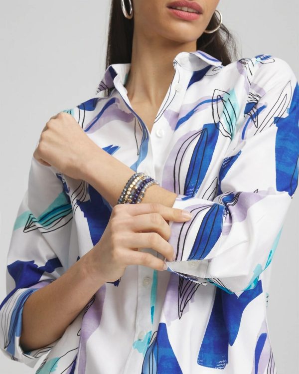 It’s no wonder we can’t keep our No Iron™ stretch sateen shirts in stock. This ready-to-wear right-out-of-the-dryer (without the hassle of ironing) top moves with you effortlessly for all-day comfort. It’s a perfect fit every time in any season, whether on its own or as a base layer. Designed with a flattering shirttail hem and a painterly coastal motif set against a solid white backdrop, this button down pairs perfectly with jeans or pants.