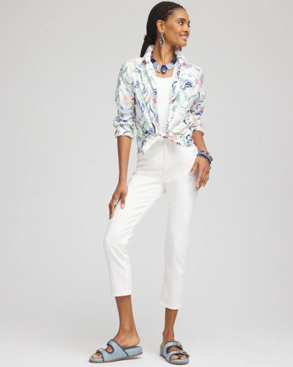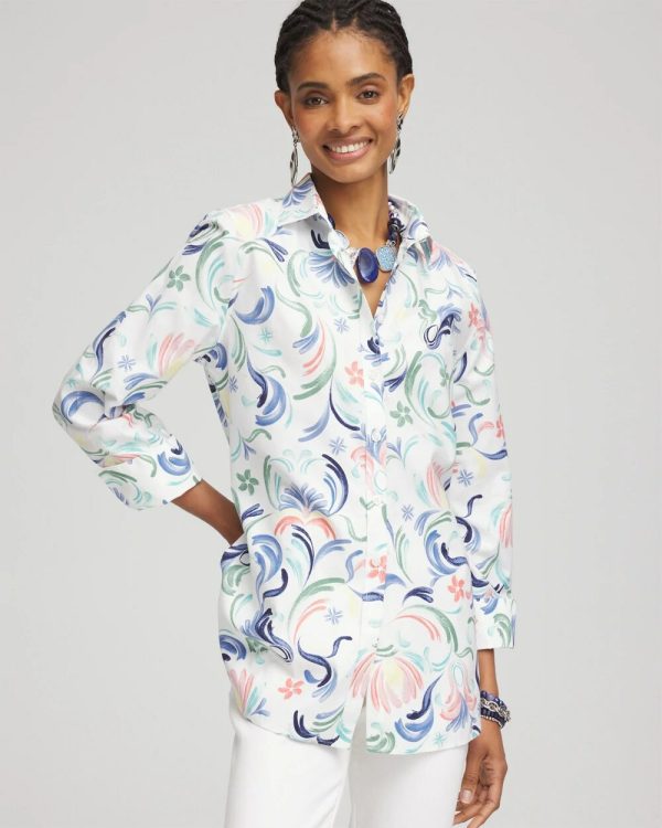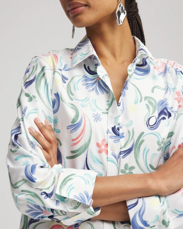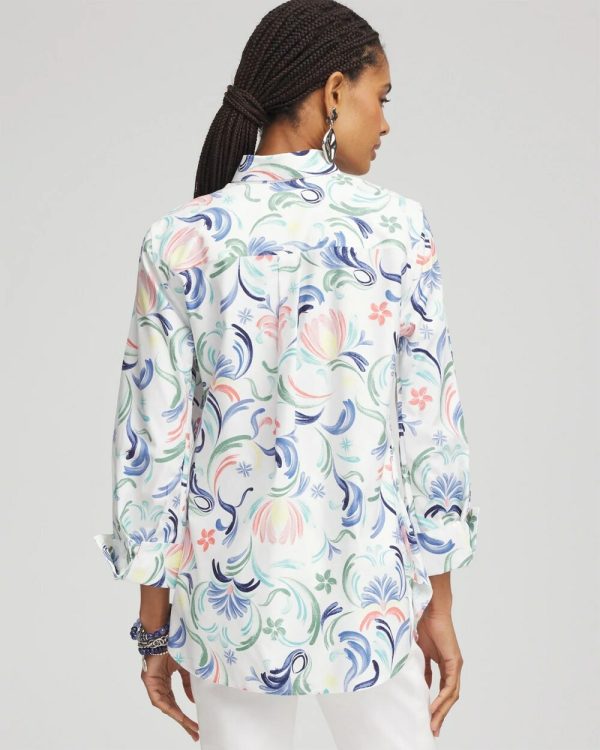 Chico’s Blouses & Shirts | No Iron™ Floral Stretch Sateen Shirt Blue Pearl Women