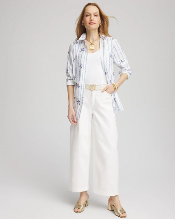 It’s no wonder we can’t keep our No Iron™ stretch sateen shirts in stock. This ready-to-wear right-out-of-the-dryer (without the hassle of ironing) top moves with you effortlessly for all-day comfort. It’s a perfect fit every time in any season, whether on its own or as a base layer. Designed with a flattering shirttail hem and a playful palm and striped motif set against a solid white backdrop, this button down pairs perfectly with jeans or pants.