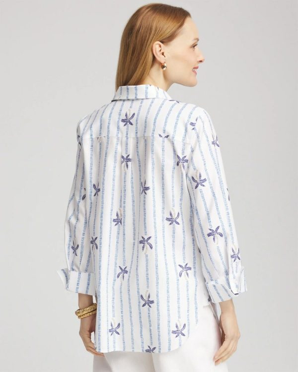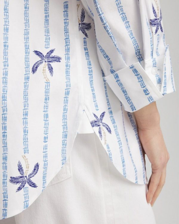 Chico’s Blouses & Shirts | No Iron™ Palm Striped Sateen Shirt Blue Casa Women
