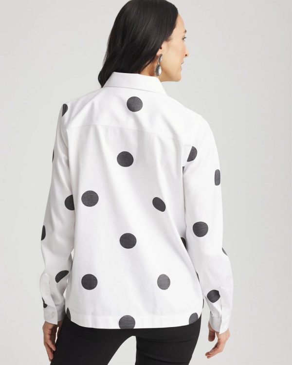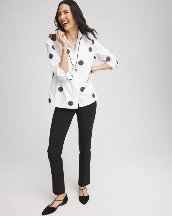 It’s no wonder we can’t keep our No Iron™ stretch shirts in stock. This ready-to-wear right-out-of-the-dryer (without the hassle of ironing) top moves with you effortlessly for all-day comfort. It’s a perfect fit every time in any season, whether on its own or as a base layer. Designed with a flattering shirttail hem and timeless polka-dot jacquard detailing, this button front pairs perfectly with jeans or pants.