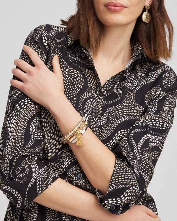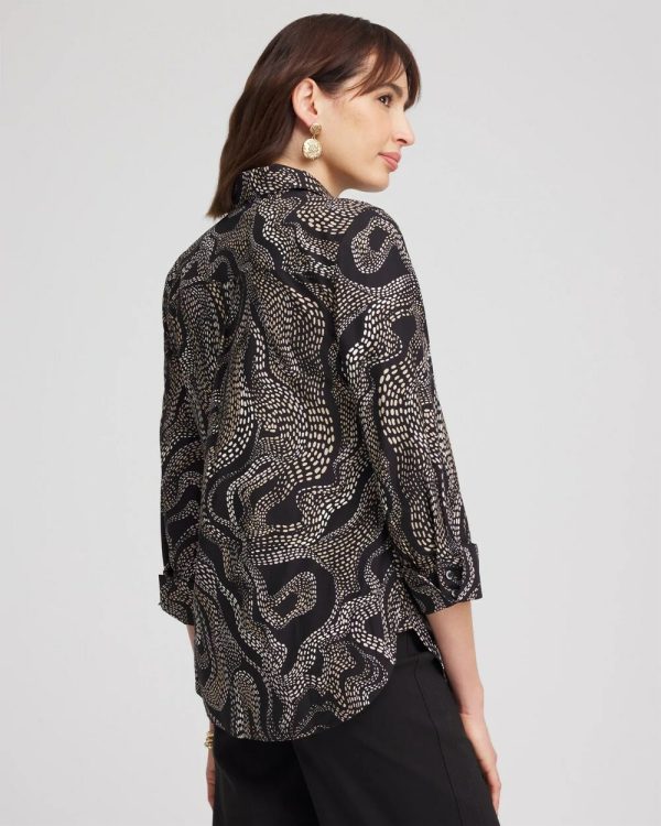 Chico’s Blouses & Shirts | No Iron™ Sateen Swirls Print Shirt Black Women