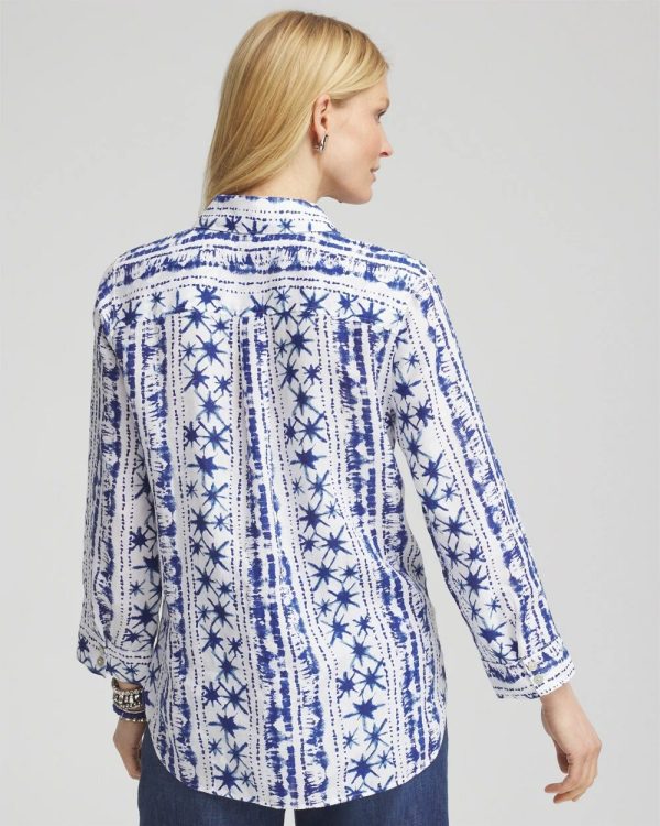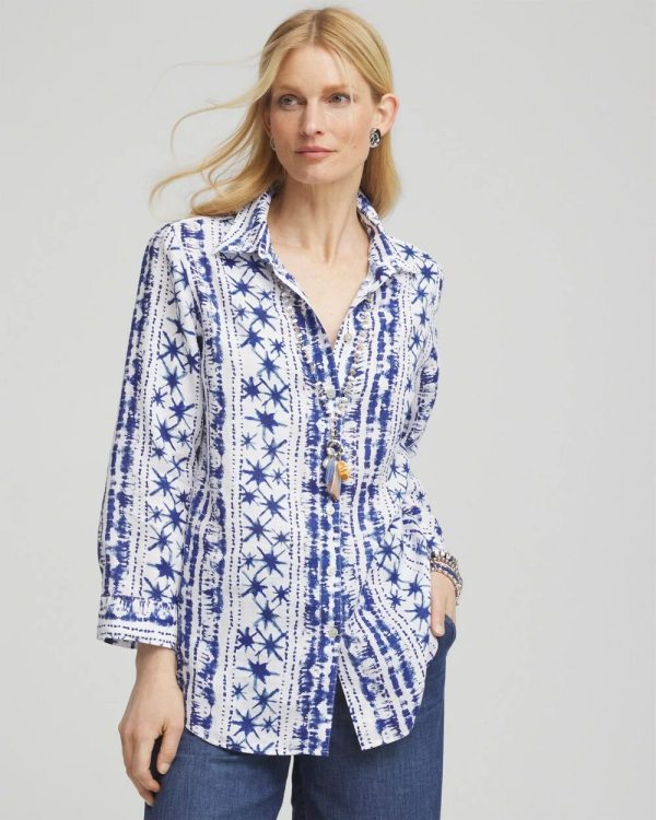 - Classic-fit; 3/4-length, button-down collared shirt.