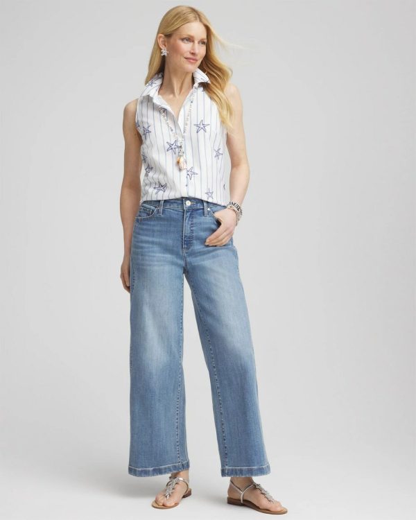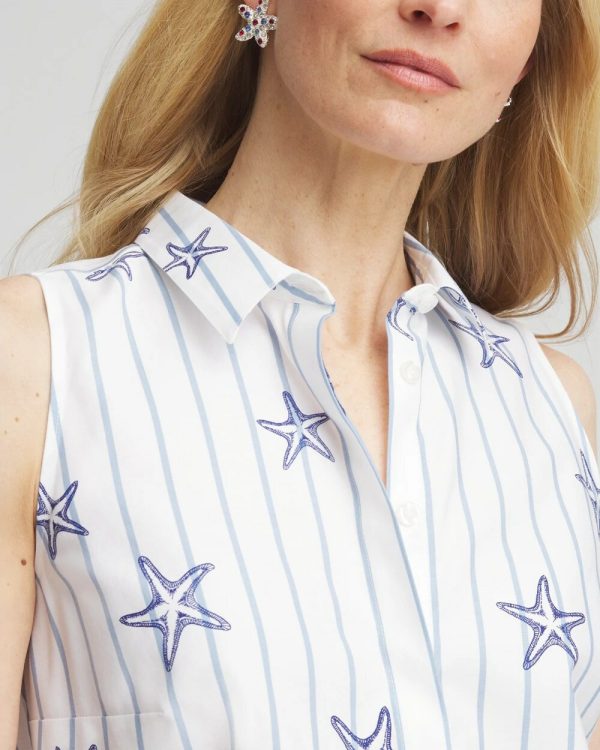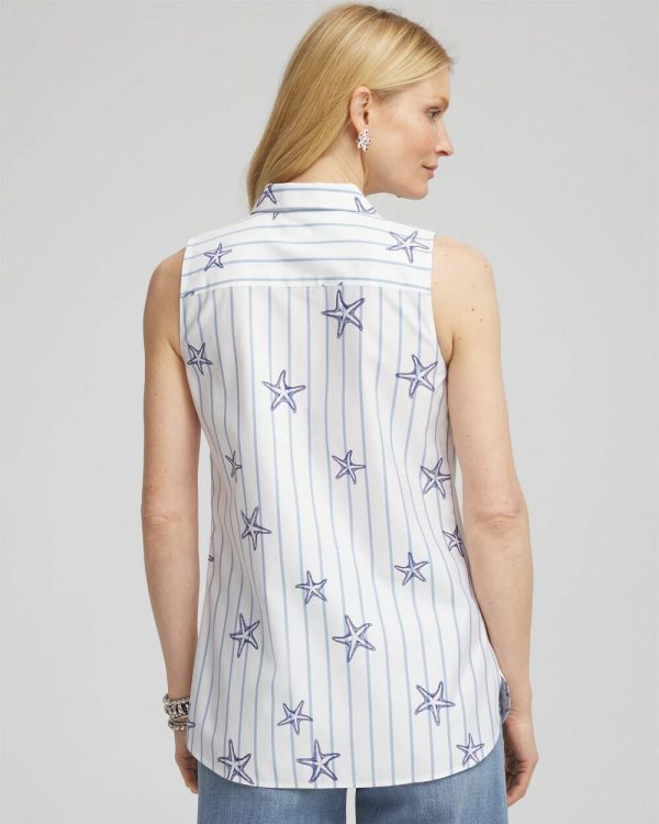 We know our NEW sleeveless No Iron™ stretch sateen shirts will be tough to keep in stock. This ready-to-wear right-out-of-the-dryer (without the hassle of ironing) top moves with you effortlessly for all-day comfort. It’s a perfect fit every time in any season, whether on its own or as a base layer. Designed with a flattering shirttail hem plus stripes and starfish print, this button front pairs perfectly with jeans or pants.