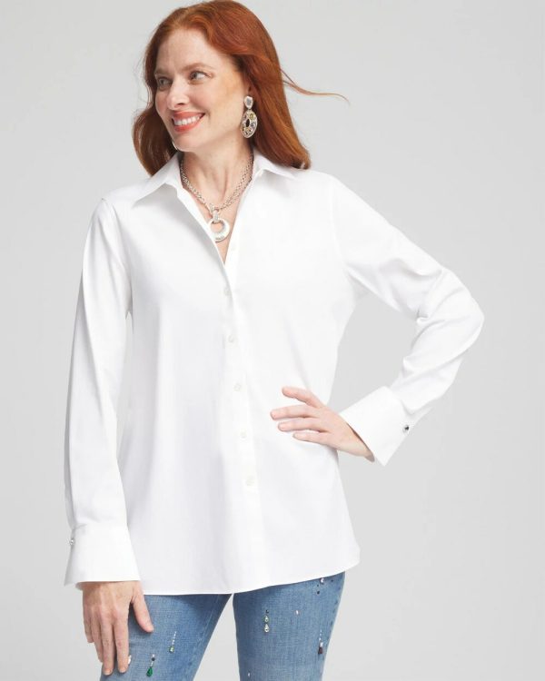 Designed with a flared, pleated hemline, our new Trapeze Shirt is a unique rendition of our most-coveted fabric, made to defy wrinkles and stay fresh from the dryer to the end of your festive holiday party. There’s a reason why our No Iron™ top is a five-star rated, bestselling customer favorite. It moves with you for all-day comfort and stays looking brand new without the effort of ironing or dry cleaning. It’s the perfect shirt in any season, whether on its own or as a base layer. Designed with a flared hem and crystal-like buttons on the cuffs, this button front pairs with jeans or pants.