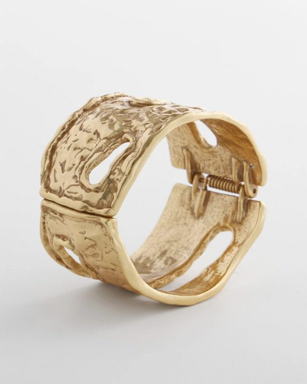 Redefine your staple bracelet collection with this new modern Molten Hinge Cuff Bracelet showcasing a molten lava goldtone effect. Pair with the matching goldtone molten earrings. Mix and match with like pieces from Chico’s new Deep Dive Collection.