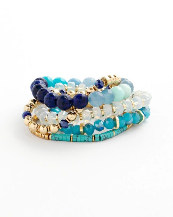 The Lapis Stone Stretch Set of Five Bracelets has your all-in-one style solution. This set includes five stretch bracelets that can be stacked or worn separately. Showcasing genuine quartz crystal, lapis lazuli stone, and goldtone accents.
