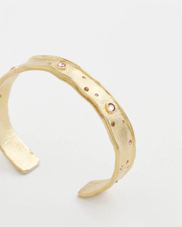 Add this new stylish staple to your bracelet stacks, Pink Scattered Stone Flexible Cuff Bracelet. Pair with Chico’s iconic jewelry collection.