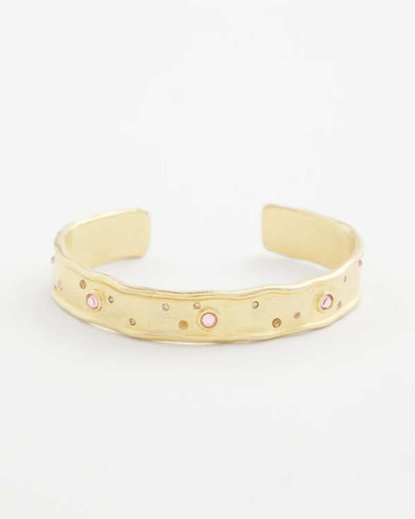 Add this new stylish staple to your bracelet stacks, Pink Scattered Stone Flexible Cuff Bracelet. Pair with Chico’s iconic jewelry collection.