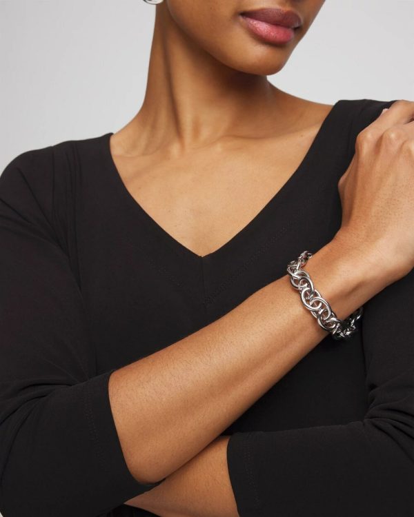 Striking Silver-Tone Link Bracelet crafted in a light catching gold-tone ring-linked chain silhouette, lending a polished look to any outfit.