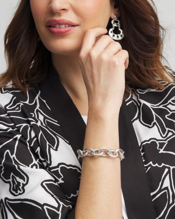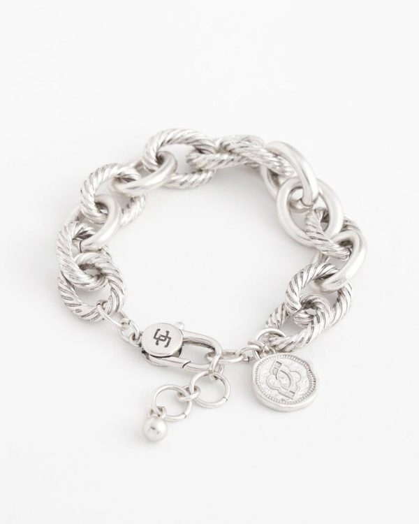 This new must-have Silver-tone Textured Chain Bracelet is perfect for all your silver-toned jewelry and casual wear. Complete with a charm and our signature CC logo.