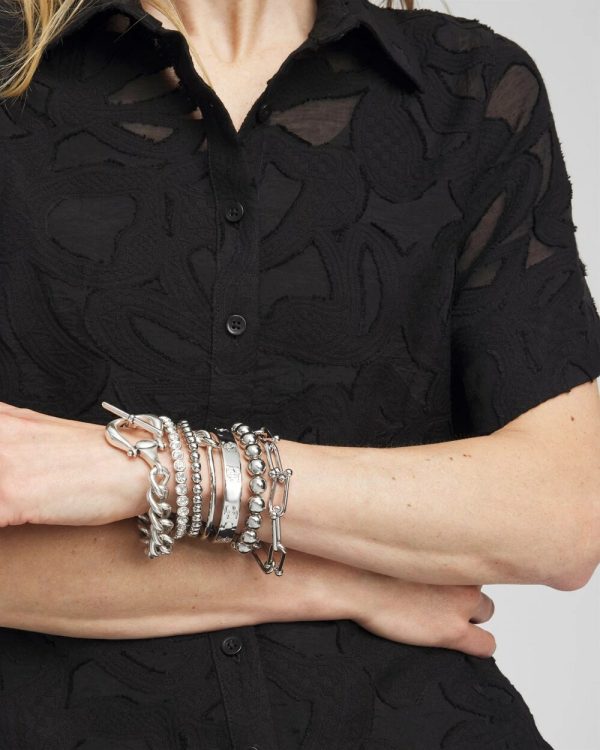 The Small Beaded Silver Tone Stretch Bracelet has easy-to-wear style. This design features small gold tone beads that add a touch of glamour. Great for stacking, this accessory is an easy, stylish addition to day or evening looks.