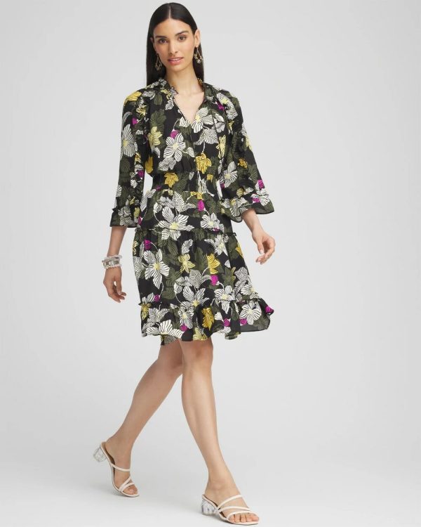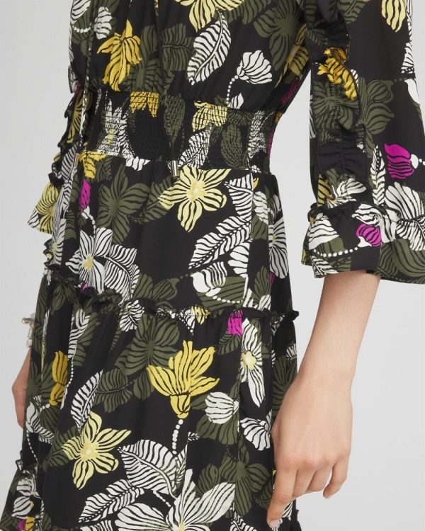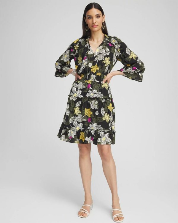 The Botanical Ruffle Bell Sleeve Dress is back for another season. This bestselling design features lightweight crepe construction, a flattering smocked waist with a tiered skirt, and ruffle details that add movement to the bell sleeves. Pair it with heels for the perfect occasion look.