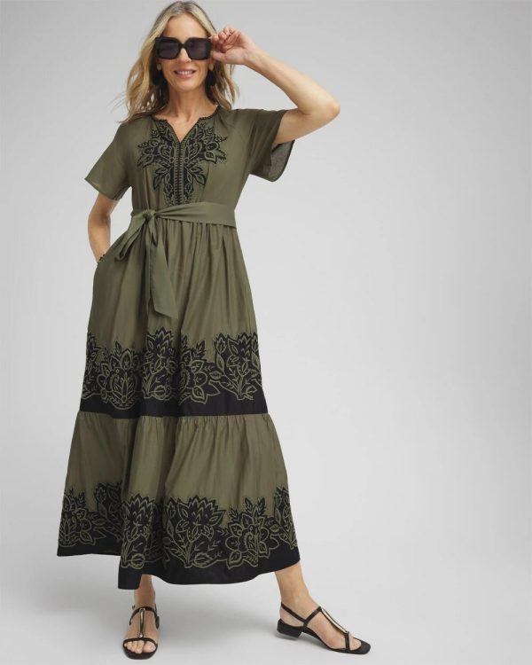 Chico’s Dresses | Cotton Embroidered Tier Dress Olive Women