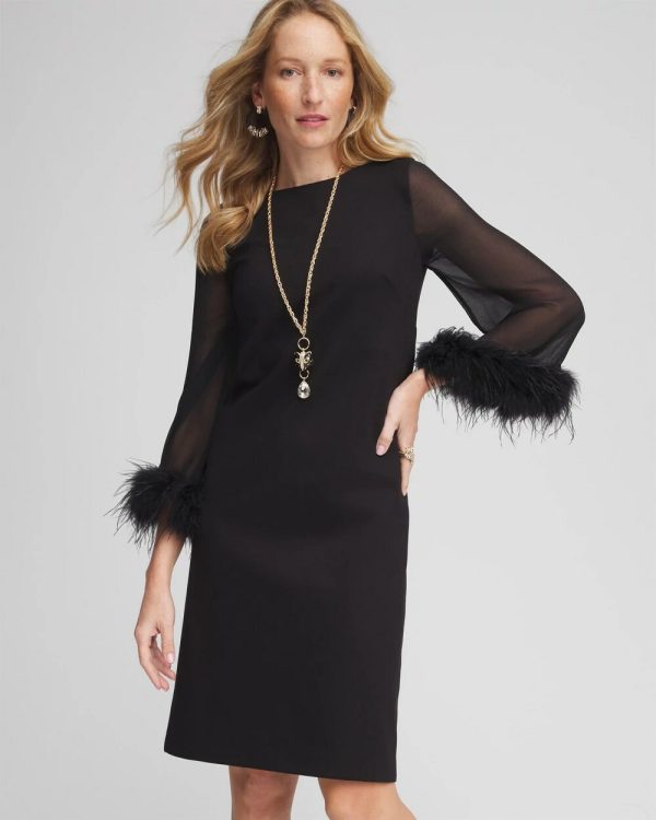 Your quintessential holiday party dress is here — debuting our new Feather Cuff Sleeve Dress. Made with our most-loved and bestselling ponte fabric, featuring stylish sheer sleeves with removable feather cuffs. Meticulously made in typical Chico’s fashion with you and your holiday experience top of mind. A great outfit for cocktail parties and semi-formal events.