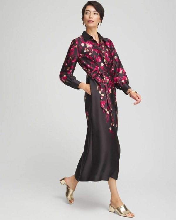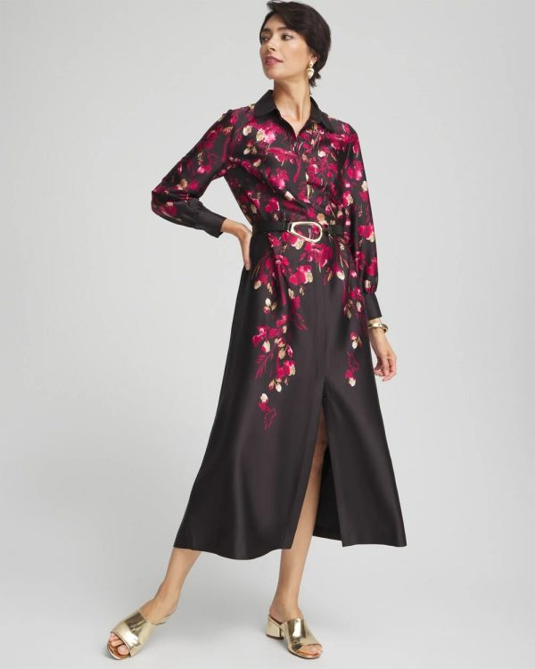 Chico’s Dresses | Leaf Print Shirt Dress Black Women