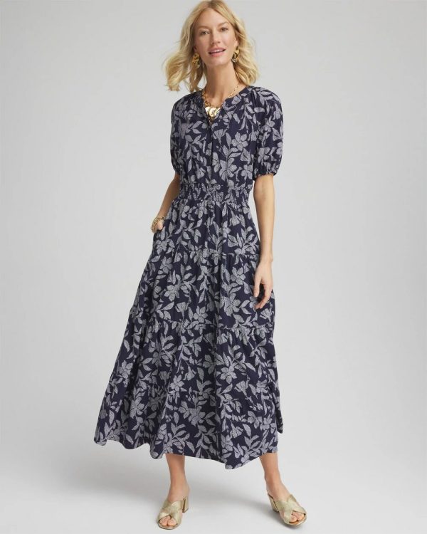 This dress imbues the playful spring into summer season — add Chico’s new Poplin Smocked Waist Maxi Dress to your 2025 wardrobe. Showcasing a smocked waistline, button up half placket, and elbow-length sleeves with elastic.