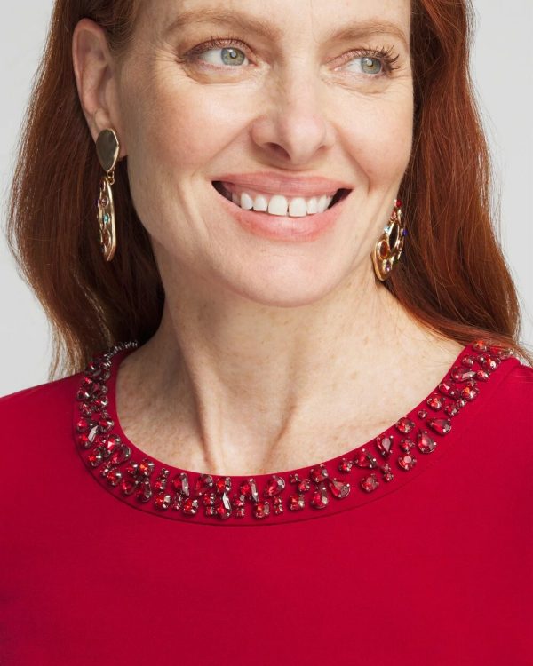 You will love this timelessly elegant Rhinestone-Embellished Maxi Dress. Soft and smooth luxurious fabric, with a subtle stretch, makes this dress a true joy to wear while keeping you stunningly stylish adorned in a rhinestone neckline. Available now in Red Allure.
