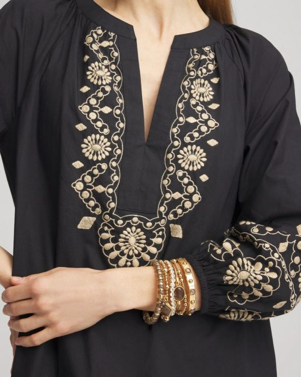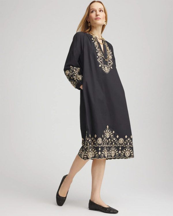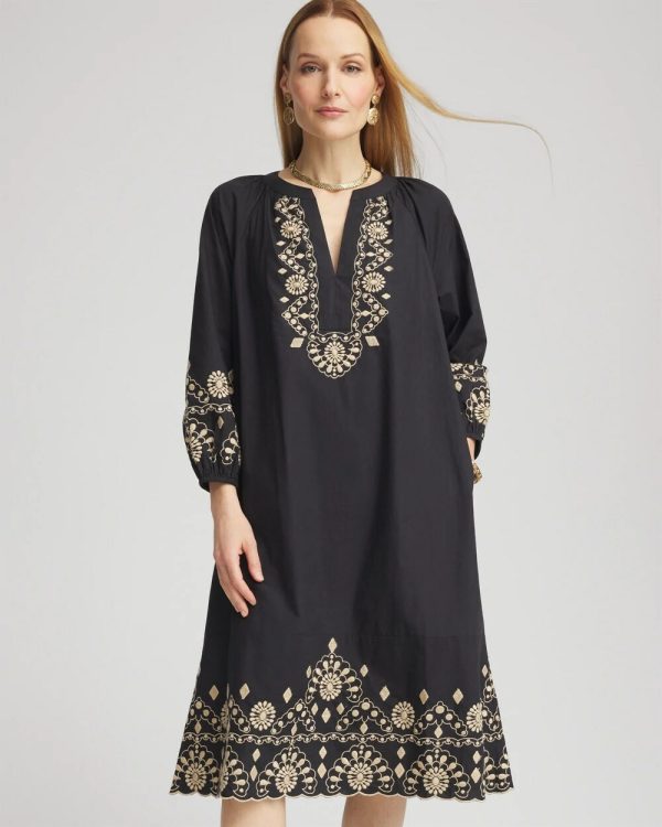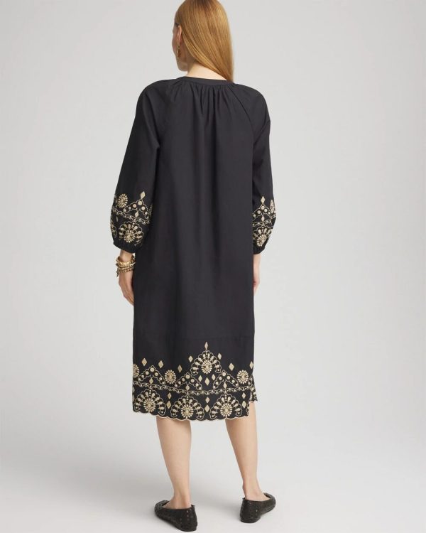 Bring the spirit of the season into your dress styles with this new next-level quality Scalloped-Hem Poplin Midi Dress. Featuring lovely embroidered sleeves, hem, and neckline, relaxed-fitting elongated silhouette, and raglan sleeves.