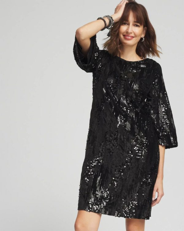 Chico’s Dresses | Sequin Bell-Sleeve Dress Black Women