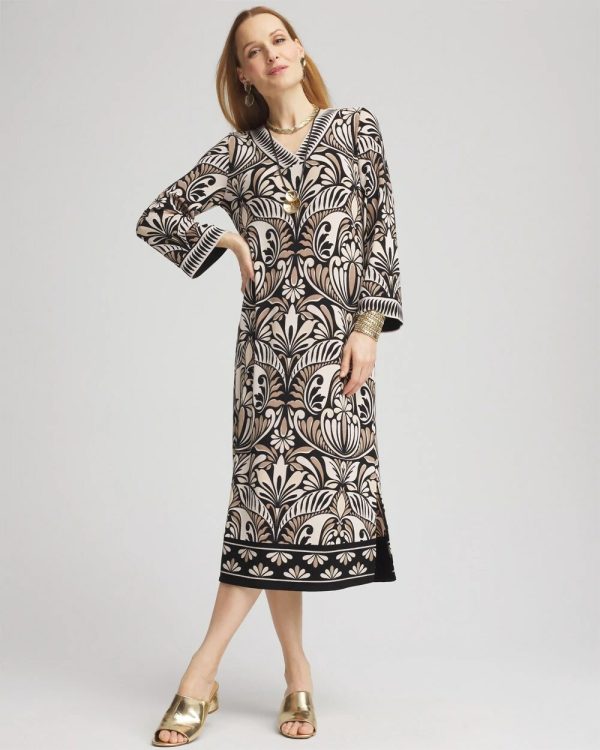 You love a timeless style with modern flair, like our Travelers™ Bell-Sleeved Midi Dress. This iteration showcases a stunning new all-over print, perfect for all your vacation adventures. Made with our wrinkle-resistant sustainable fabric, this dress looks fresh right out of the suitcase, no matter how long it’s been in transit.