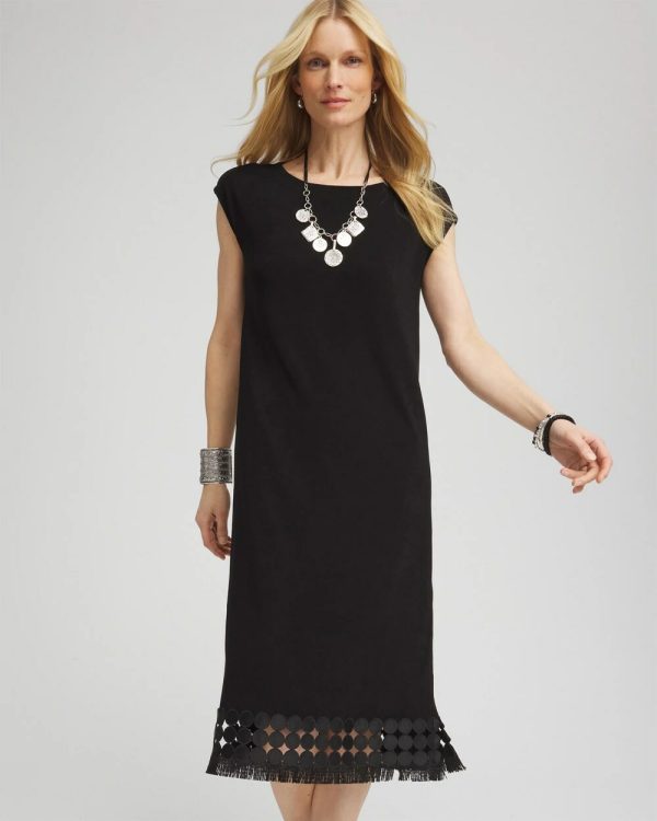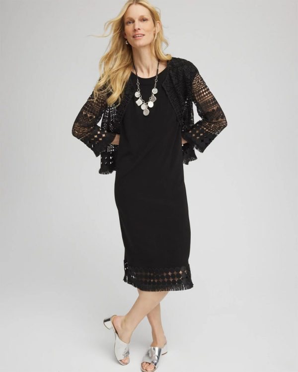 Chico’s new Travelers™ Collection Lace-Hem Dress gives you head-turning style with one easy piece. Dress it up or down, perfect for traveling. This wrinkle-resistant fabric means you can give your iron the day off and still look flawless. Add a Travelers™ jacket or cardigan when you want lightweight warmth or a bit more coverage.