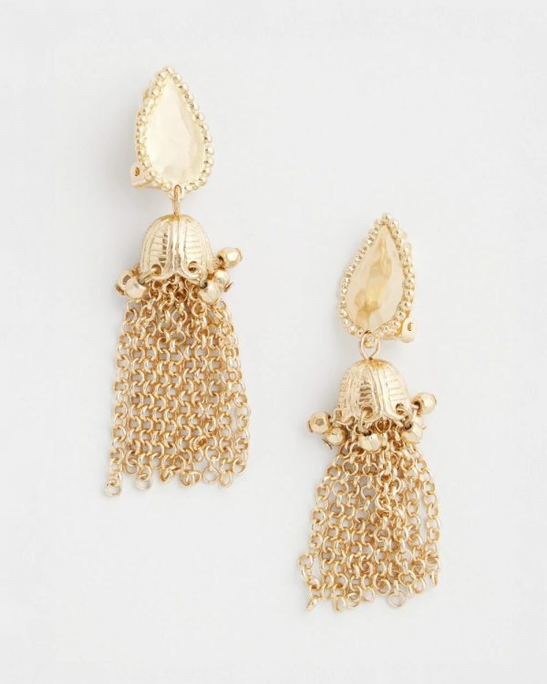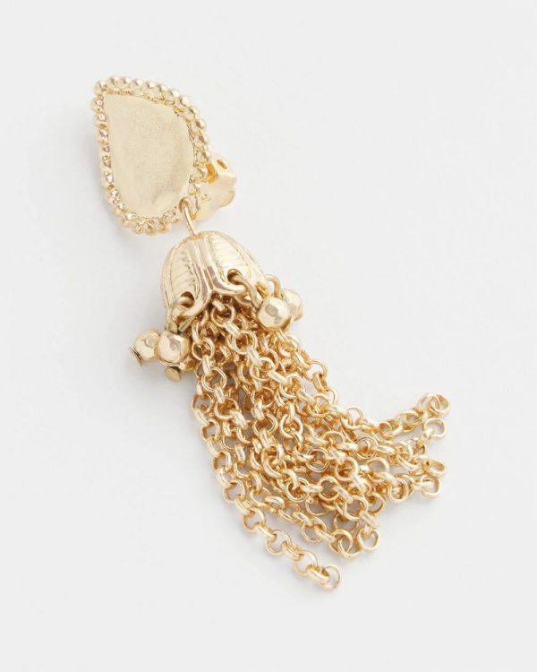 - Gold-tone tassel clip-on closure earrings.
