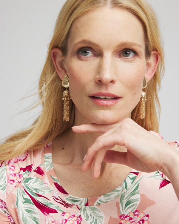 Add these new Clip-On Gold Tassel Chain Earrings to your staples collection. Pair it with Chico’s matching, iconic jewelry styles.
