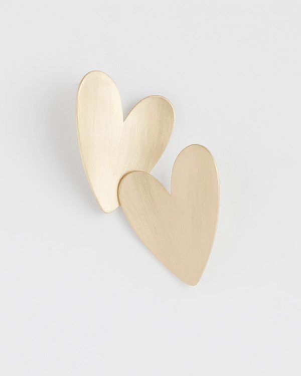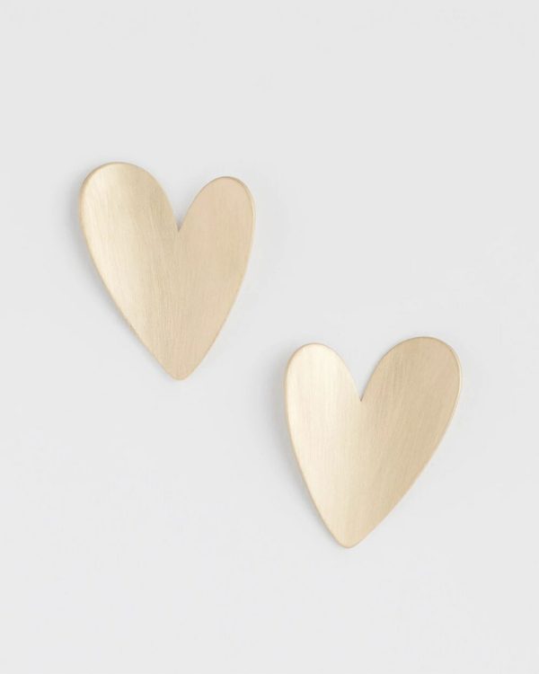 - Gold heart stud earrings with post closure.