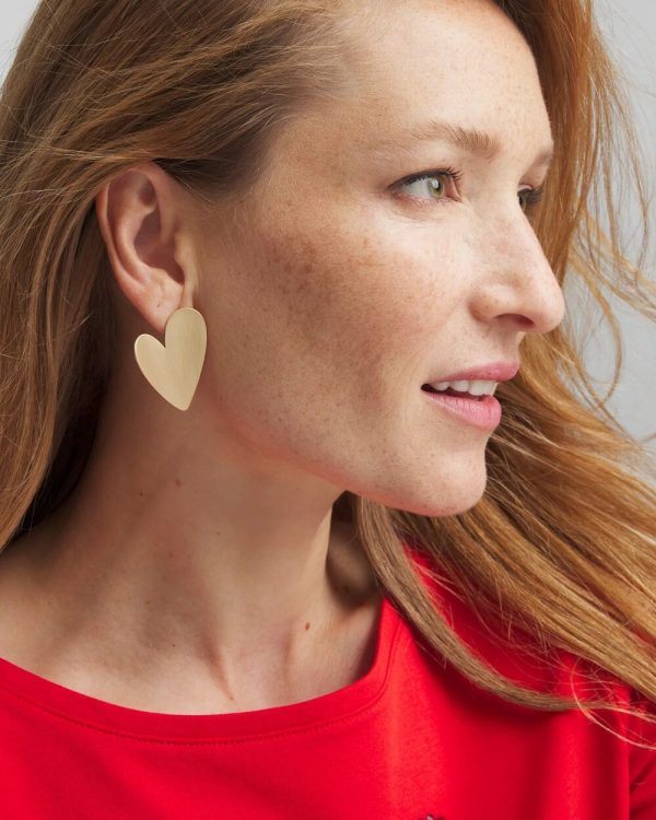 - Gold heart stud earrings with post closure.