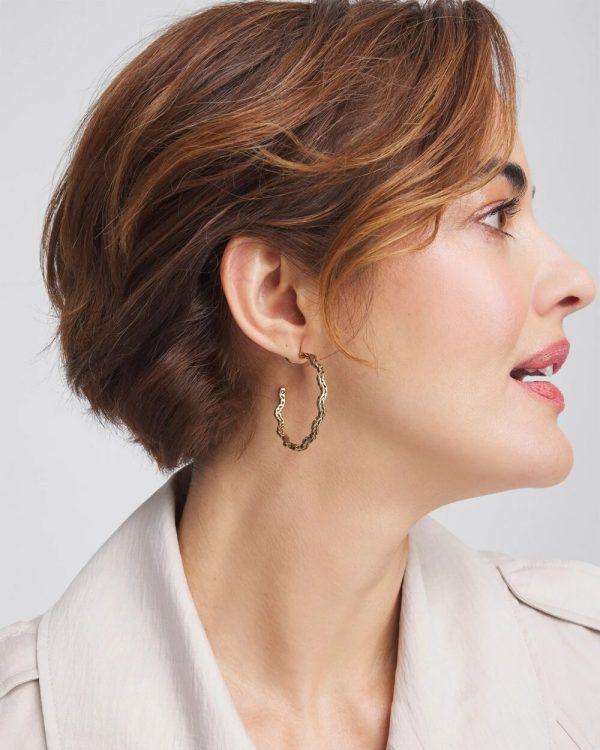 Add these new classics to your spring wardrobe — No Droop® Gold Tone Wave Hoops. Pair with pieces from Chico’s Desert Waves Collection.