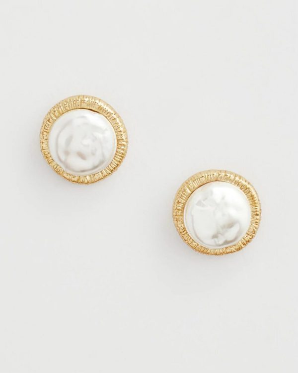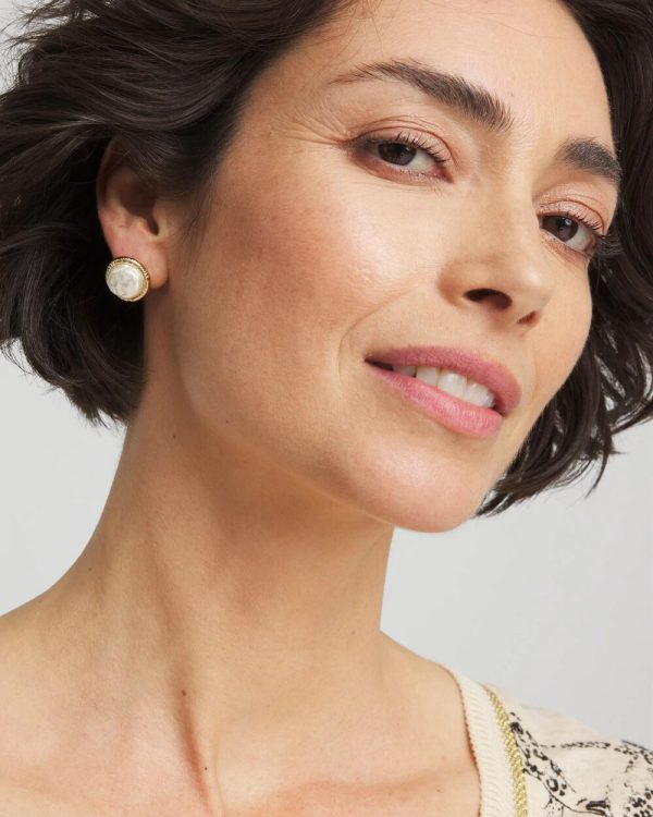 The perfect pearl earrings. Encased by a goldtone ribbon, these new pearl studs showcase a special technique that recreates the ultimate luxury of freshwater pearls. Pair with your goldtone, pearl, and ocean-inspired styles.