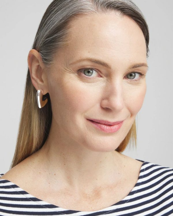The No Droop® Silver Tone Mini Hoops have sporty chic. This design features unique puffer style silver tone hoops. Pair them with athleisure pieces for a unique addition to your daily looks.