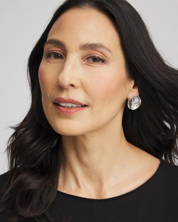 Add these new Silver Tone Round Disc Stud Earrings to your 2025 staples collection. Pair with glamorous Chico’s bracelets and matching collar necklace.