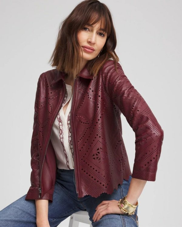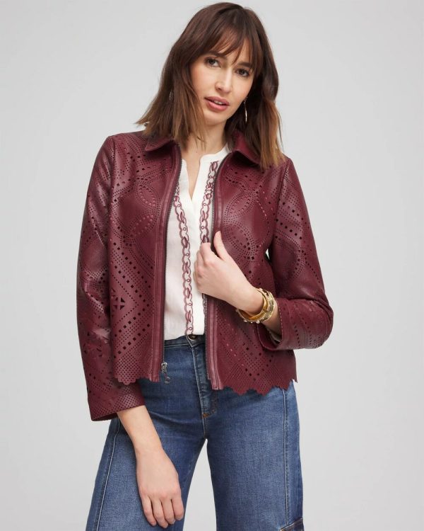 Chico’s Jackets & Coats | Cutout Faux Leather Jacket Rich Pomegranate Women