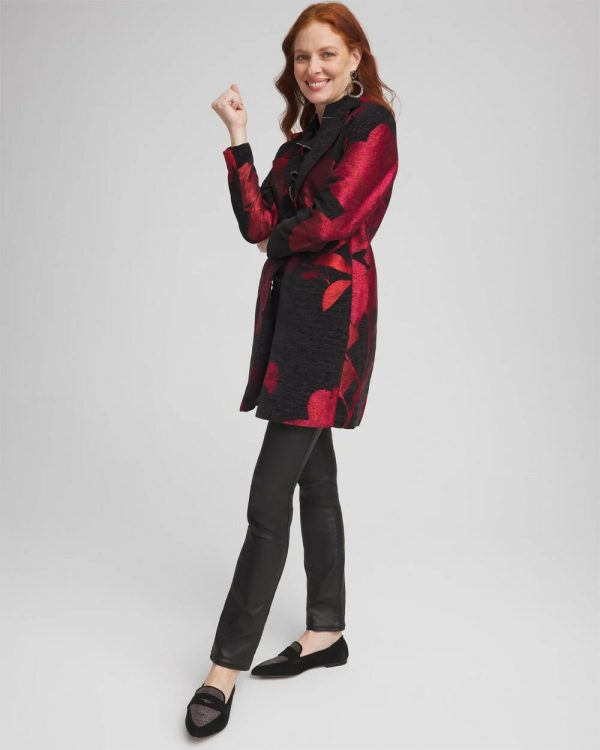 Chico’s Jackets & Coats | Red Floral Jacquard Topper Red Allure Women