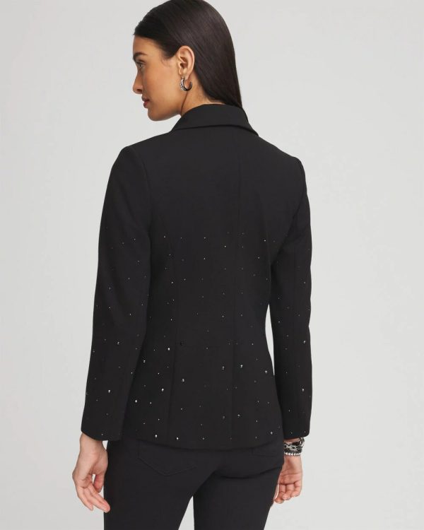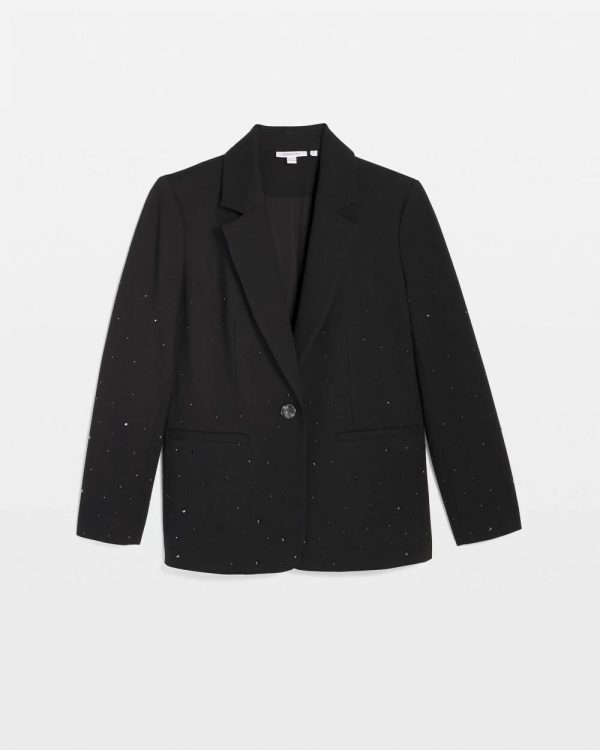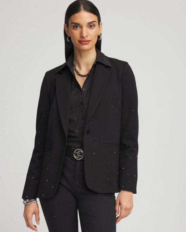 The classic black blazer — adorned for the holiday season — our new glamorous Rhinestone Embellished Blazer. Featuring our bestselling ponte fabric and all-over rhinestone embellishments.