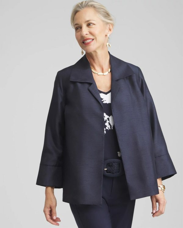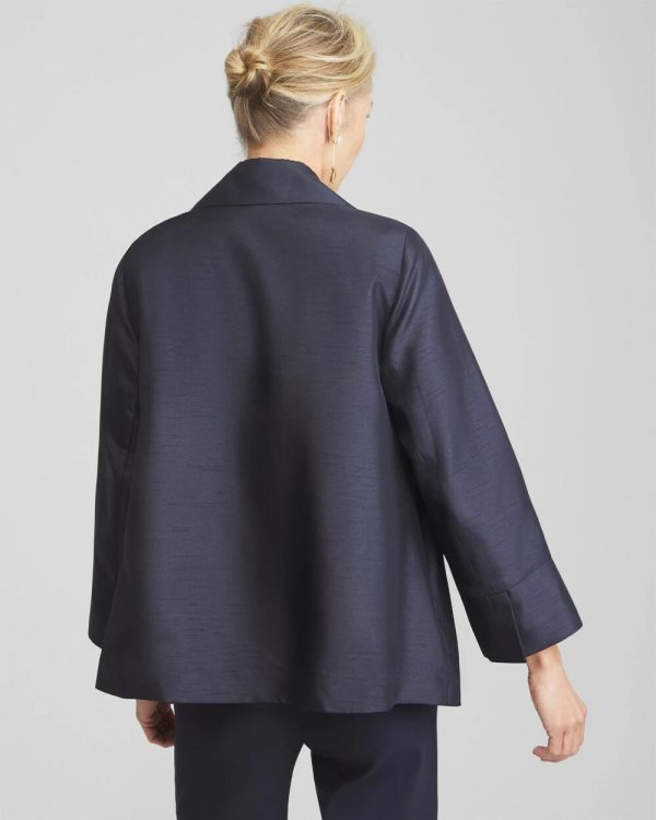 Upscale affairs call for our Shantung Topper. This bestselling woven satin design features a flattering A-line fit, plus a roll cuff for ease of wear. Pair it with all your special occasion styles for a statement-making final touch.