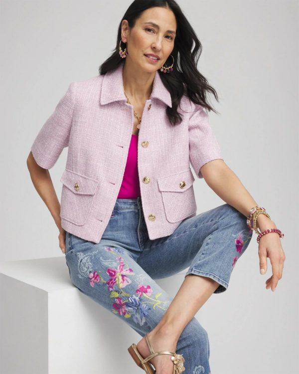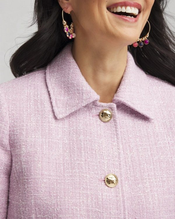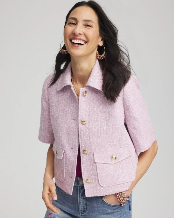 A classic tweed made for the modern Chico’s woman this spring — the new Short-Sleeved Tweed Jacket. Featuring two front pockets and gold decorative buttons.