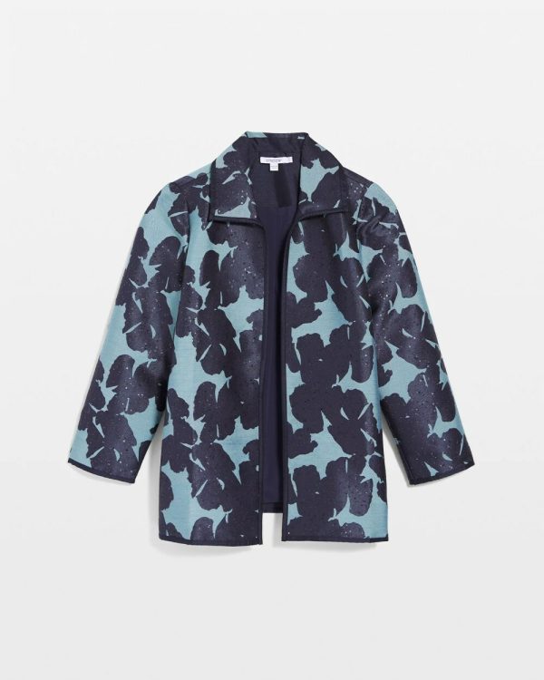 This new Travelers™ Collection Jacquard Jacket has so much style. Wear as a stunning top layer. Featuring a floral jacquard print, offset with a black inner lining. Designed with bracelet sleeves for styling options, this topper makes it easy to pack light.