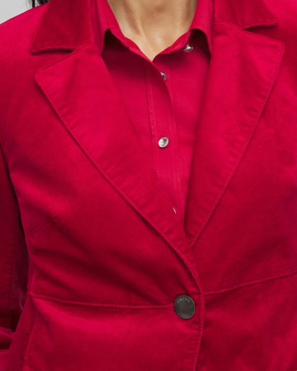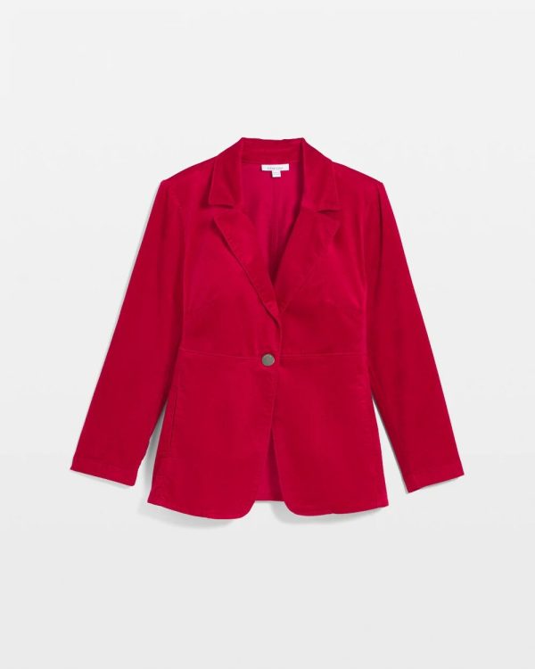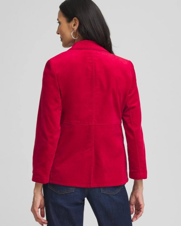 Say hello to a seasonal favorite, the Velvet Blazer. This design features plush velvet material and button closure, making it perfect for dressing up seasonal attire. Wear this topper with pants and a fashion top as the weather cools down.
