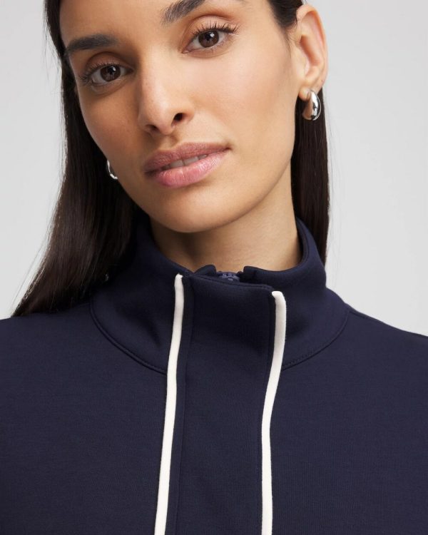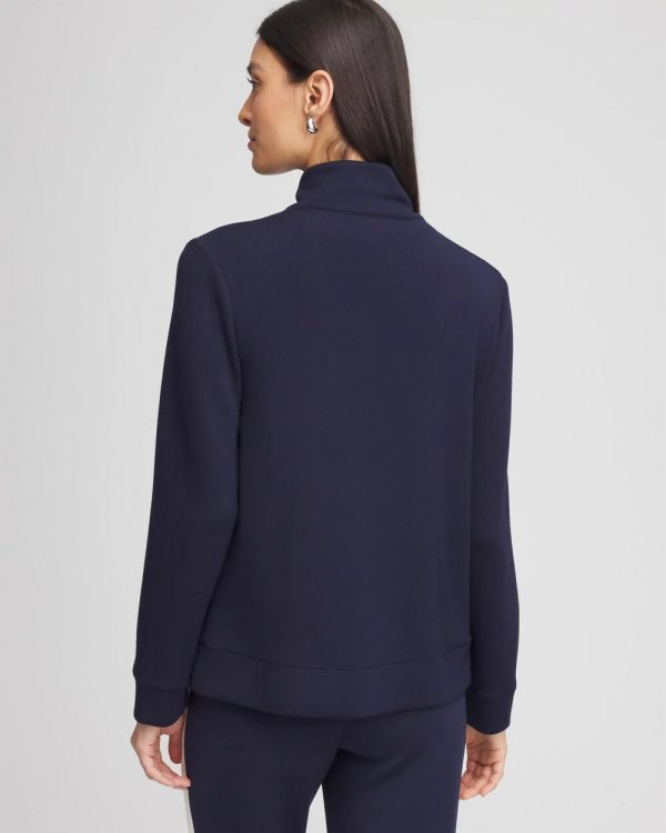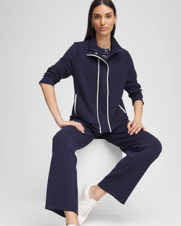 Showcasing a nautical yet sporty sensibility, the new Zenergy® Scuba Contrast Jacket is crafted with Chico’s lightweight scuba fabrication, featuring a contrast crew neck and cuff with left shoulder snaps. Pair with our Zenergy® Scuba Floral Tank and Zenergy® Striped Scuba Pants for a casual, sporty look.