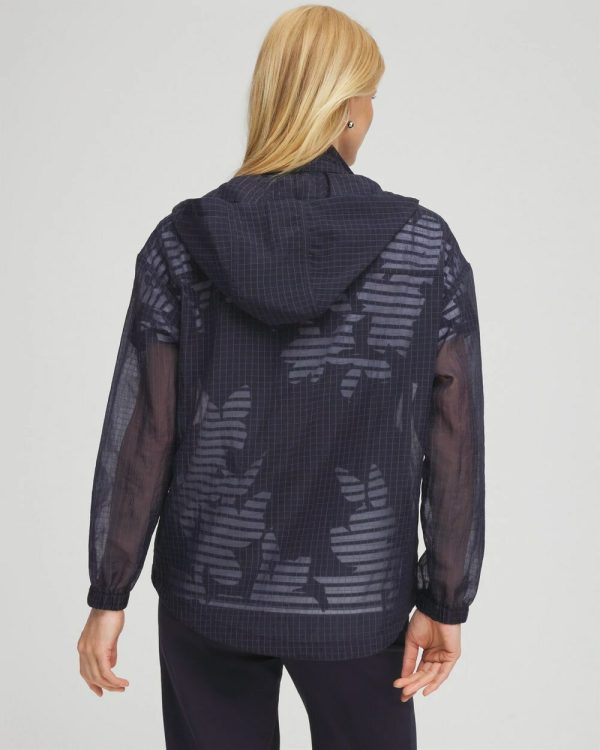 The Zenergy® Sheer Textured Jacket gives you lightweight coverage. This design features a sheer shadow box texture print and so many utility details, like front flap & zipper pockets, removeable hood, and bungee hem. This jacket pair well with everyday athleisure wear.