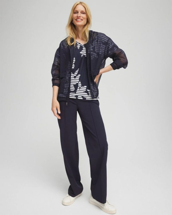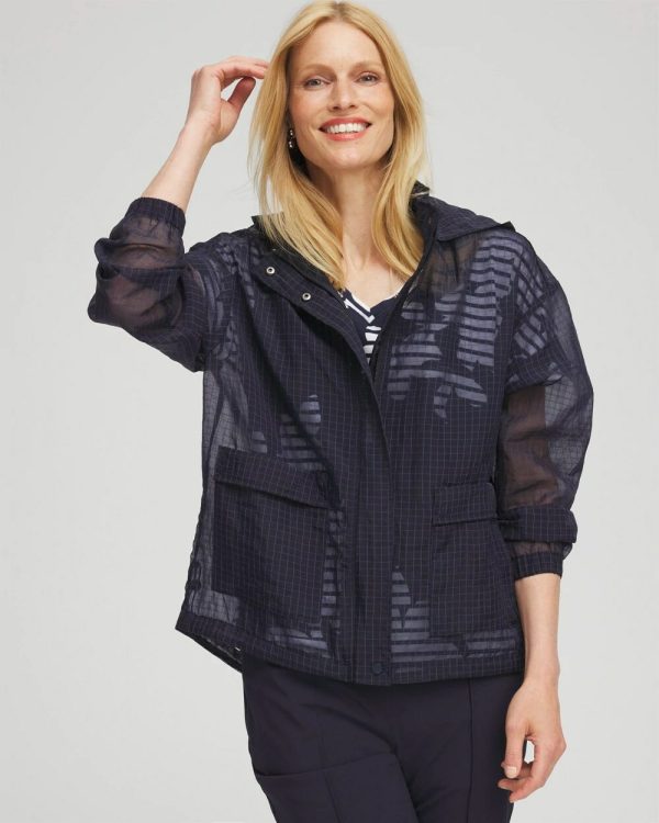 The Zenergy® Sheer Textured Jacket gives you lightweight coverage. This design features a sheer shadow box texture print and so many utility details, like front flap & zipper pockets, removeable hood, and bungee hem. This jacket pair well with everyday athleisure wear.
